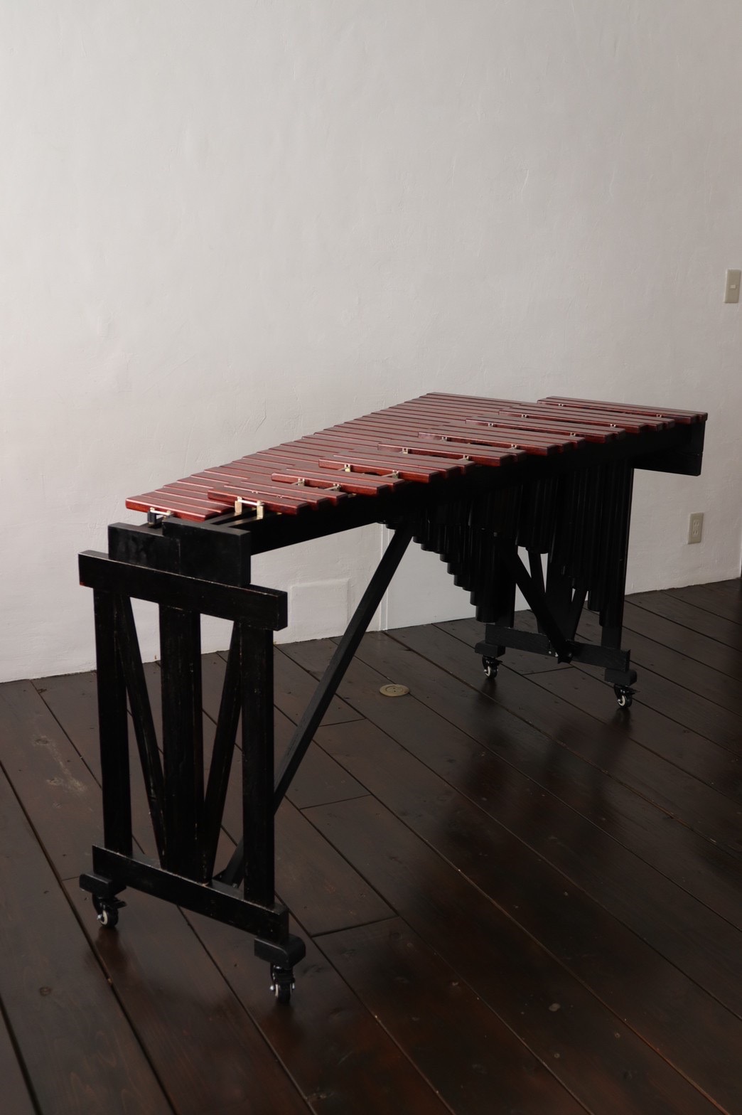 1950年代のマリンバの資料をもとに制作した作品で、拭き漆を施したカリン材の音板と、漆塗りを施した竹製の共鳴管によって構成されている。アルミや真鍮製の共鳴管に比べると反響時間は短いが、シロフォンのような明瞭な響きを持ちながらも、マリンバ特有の低く広がりのある音色を奏でることができる。